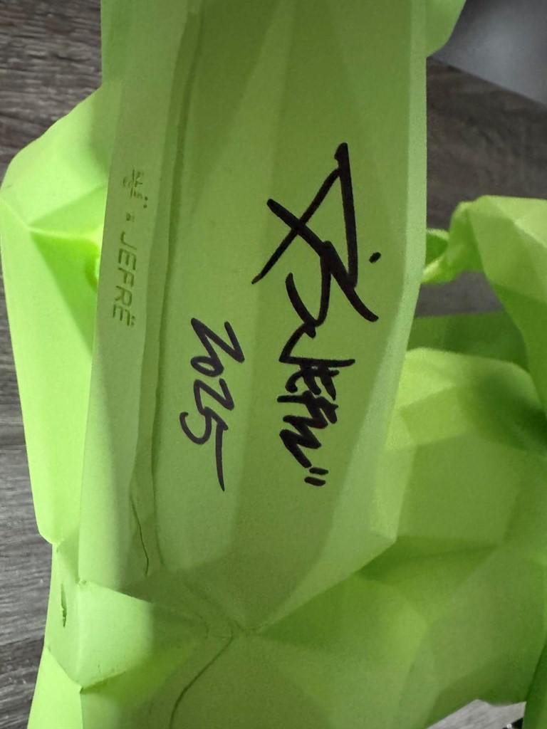 Breaking News: JEFRË signs with Shark Art and Daymond John for Global Brand Representation and Art Management. Jefre is our own local artist who has sculpture in the Sculpture Garden at the WAVE Hotel. Established in 2008, JEFRË is a sophisticated boutique design studio that specializes in environmental art and couture landscapes with site-specific artworks in cities around the world including London, Miami, New Orleans, Philadelphia, Abu Dhabi, San Antonio and Manila. JEFRË’s practice continues to evolve with a wide-range of projects, including community design, public art, parks and plazas, sculpture, temporary installations, interior design, avant-garde landscapes, eco-installations, campus planning, and myriad international design competitions. JEFRË approaches each new landscape with an act of questioning, as building context for the location is an essential way to begin to know the community. Combined with a deep understanding of the historical, environmental, and social relationships influencing the site and the architecture, JEFRË’s activation of public spaces remain committedly responsive to the aesthetic and community elements anchoring each work. Constantly seeking out new and innovative approaches, JEFRË remains on the cutting edge of modern design, keenly incorporating the latest technologies, materials and textures to explore discrete object making in both large and small scale. In 2019, JEFRË takes his unique design approach to launch his signature series to date, XLS. This exciting expanse in his practice takes human-scaled, figurative works into predominantly new viewing spaces and makes the work accessible for emerging and established collections. State of mind project: As a Public Artist for past decade I have created memorable city scale iconic works that define people, culture and place and now in a place where I want to go small. 2019 is my opportunity to launch XLS. “XLS, Xtra Large Small is a retrospective of my Xtra Large Work made Small. Small in scale Xtra Large in Life.” "One Love" is from the XLS collection, sits at 12 inches and is autographed by Jefre. https://jefre.org/ https://www.culturedmag.com/article/2020/11/04/artist-jefre-exhibition-points-of-connection-is-more-relevant-than-ever/